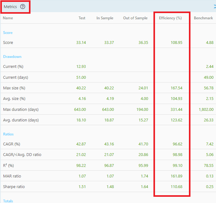 Metrics Efficiency