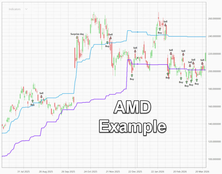 Take a look at this example of recent trades in AMD. Notice how the lower purple often gets broken and then price bounces right back up into the “no go zone.”