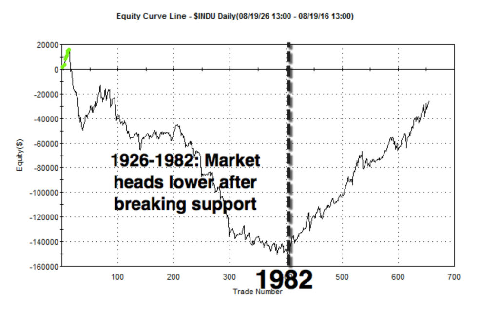 Here's what happens when you buy a 20-day low and sell a 5-day high. From 1926-1982, it resulted terrible returns. Now the market tends to reverse after a “support” break.”