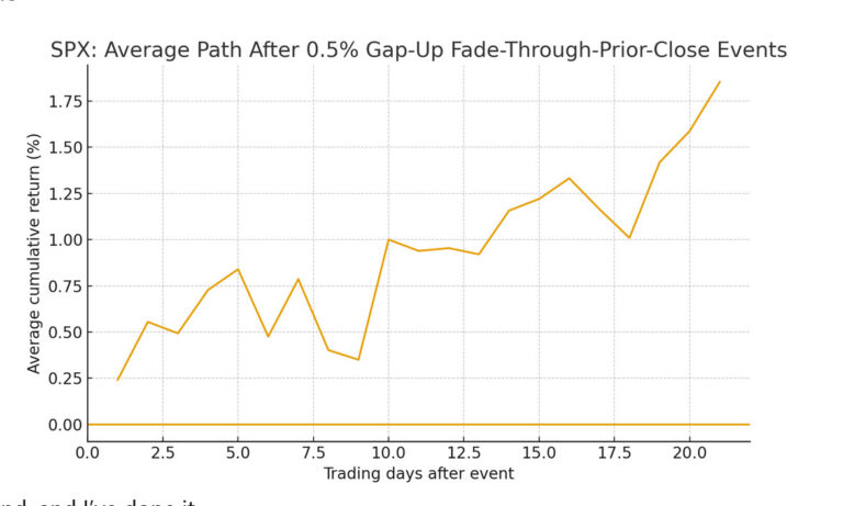 Since we're evidence-based traders that don't just live in our head, let's see what happens after a big gap up that closes below the previous day.